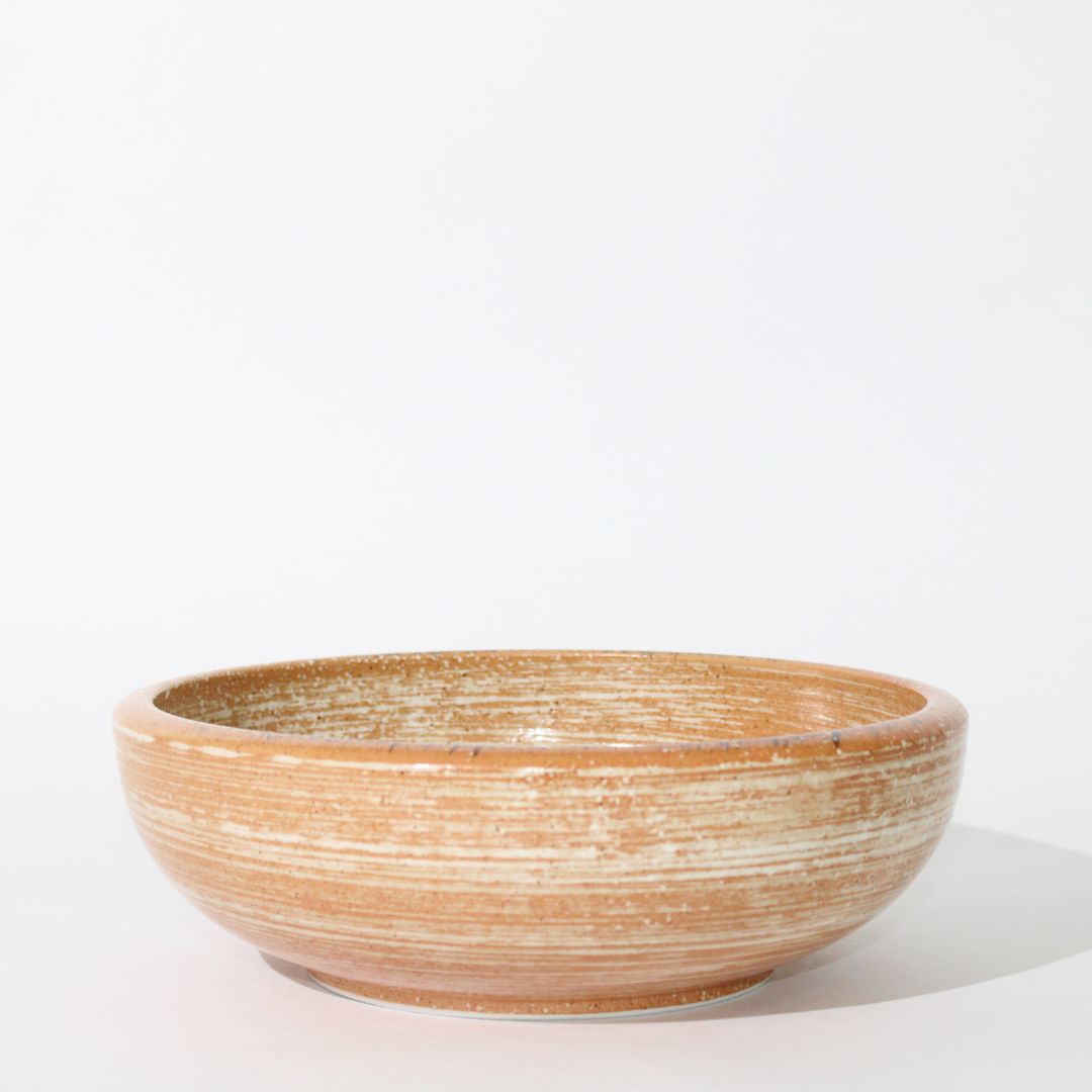 A warm blend of brown and orange hues, softly speckled with cream tones that reveal a natural, layered texture. The Kyoto Serving Bowl brings quiet beauty to the table — crafted for gatherings and moments to cherish.