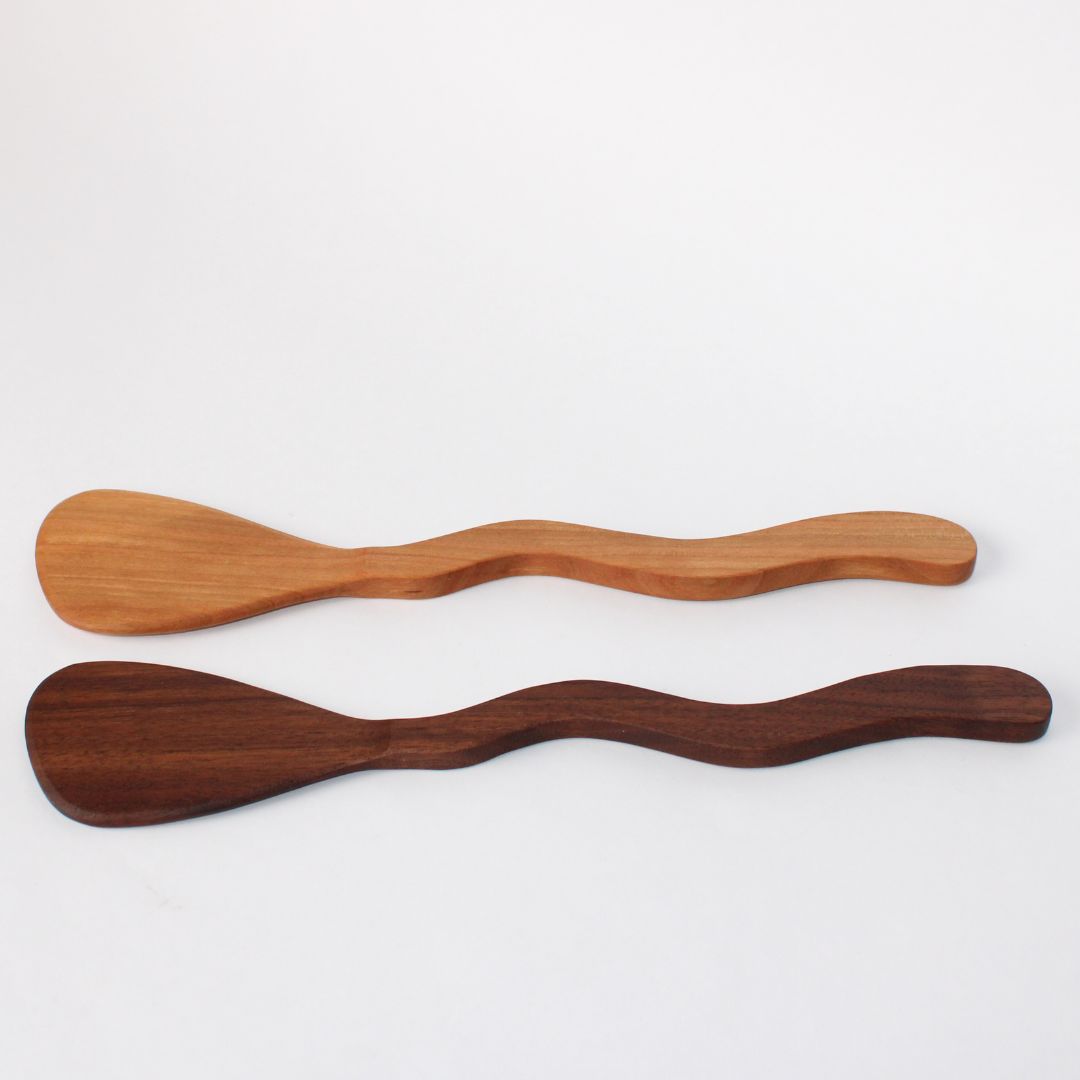 The Squiggle Spatula combines playful design with practical function. Handcrafted from walnut wood, its wavy handle provides a comfortable, ergonomic grip for effortless stirring and scraping. Lightweight yet durable, it’s gentle on cookware — a beautiful and functional tool for everyday cooking.