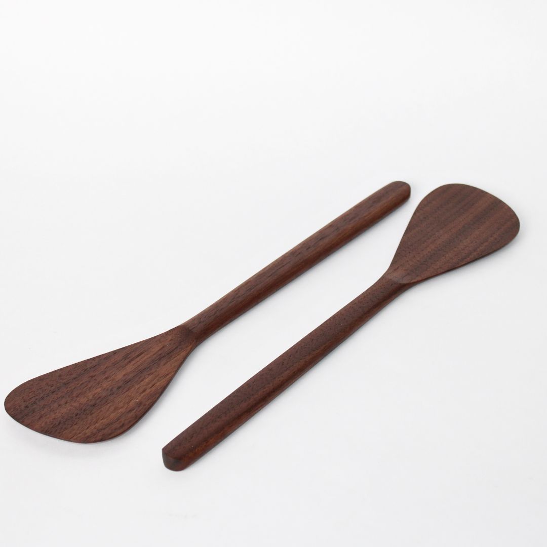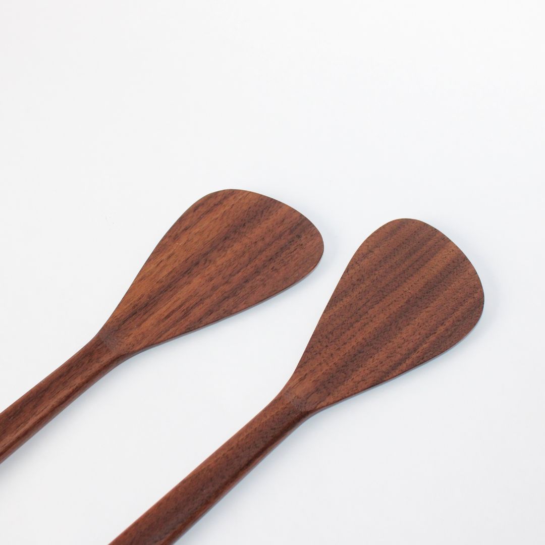 The Walnut Salad Servers are hand-carved with a smooth finish and sculptural form, designed to bring warmth and character to your kitchen. Perfect for serving salads, plating dishes, or use as a versatile spatula, each piece highlights the natural beauty of walnut wood — an elevated essential for everyday gatherings or a thoughtful kitchen refresh.